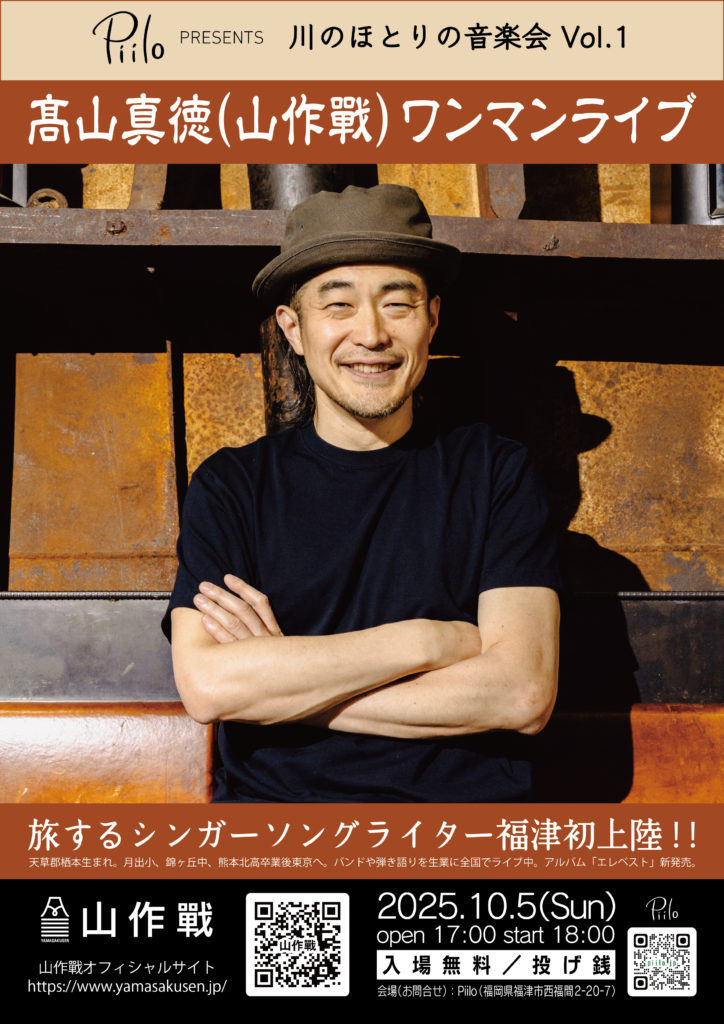 旅するシンガーソングライター「山作戰」こと髙山真徳さんがPiiloにやってきます!
